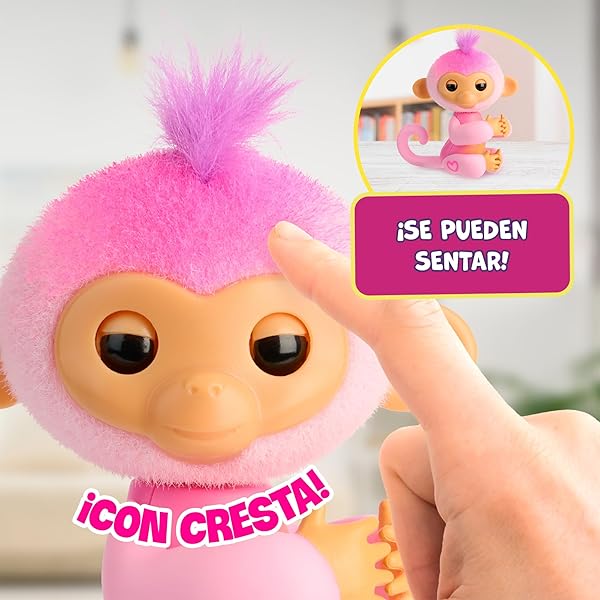 - La cola de los fingerlings es ajustable, con lo que pueden sentarse; pero esto no es todo ya que dicen hola y adiós cuando apagas al adorable monito