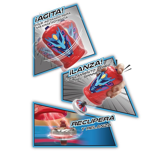 • Tres sencillos pasos: Carga la peonza, agítala para crear energía, y lánzala para ganar la batalla. ¡Es fácil y emocionante!