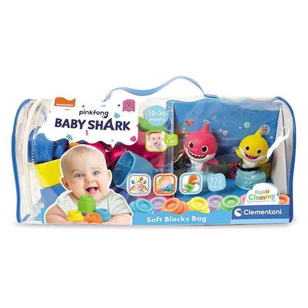 Clementoni-17428 – Bolsa Baby Shark – construcciones blanditas para bebé a Partir de 6 Meses