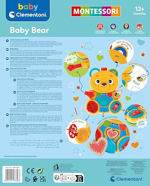 - Un juego inspirado en el método pedagógico Montessori, con muchos mecanismos y actividades estudiadas para ayudar al niño a entrenar la manualidad y ejercitar la capacidad de concentración.