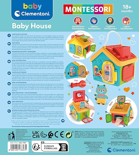 Clementoni – 17857 – Montessori Baby – Casita De Actividades – Juego Infantil para Desarrollar La Psicomotricidad Fina Y Las Habilidades Manuales, Juego Montessori 1 Año, Juguete Bebé 18 Meses