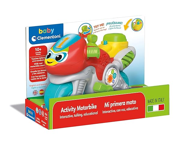 - Ayuda al niño a aprender las letras y los números gracias a los botones interactivos en la zona del baúl de la moto; además de tener una llave que se puede girar y accionar