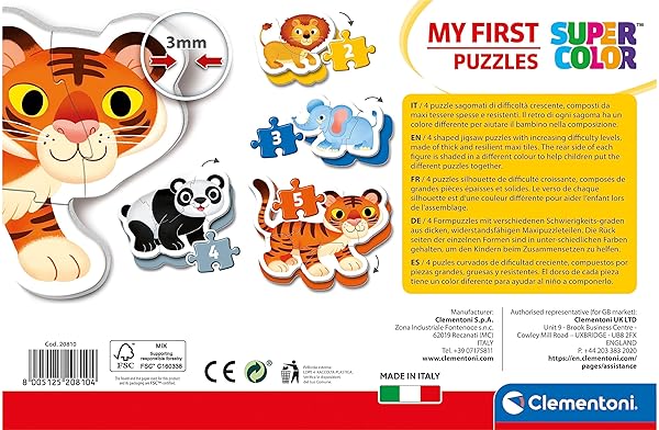 - Puzzles progresivos, 4 puzzles de: 3, 6, 9 y 12 piezas de distintos personajes
