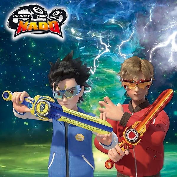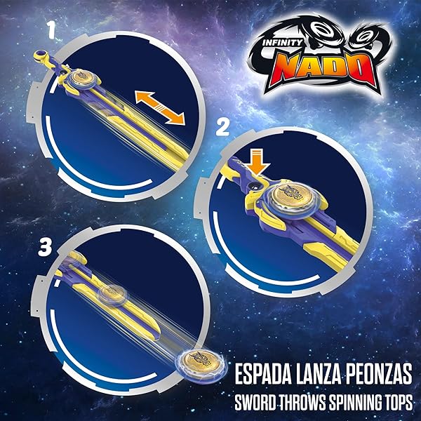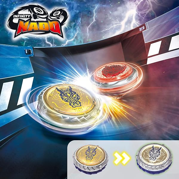 - Desafía a tus amigos y batíos en emocionantes duelos con vuestras poderosas peonzas Nado en el interior del estadio arena Infinity Nado; cada peonza está equipada con habilidades únicas y cuenta con efectos de luz multicolor que se activan con la espada lanzadora