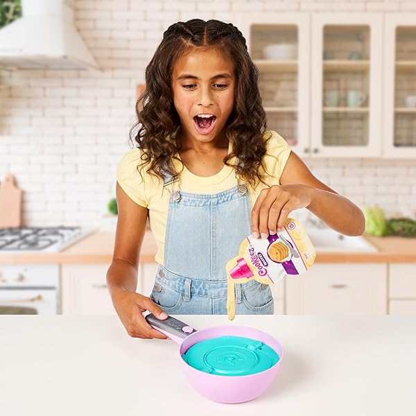 - Con la sartén mágica de Cookeez Makery, los niños pueden crear tortitas de fantasía. Coloca la masa incluida en la sartén, pulsa un botón y ¡mira cómo la tortita cobra vida mientras se da vuelta sola! ¡La magia de la cocina en la palma de tus manos!