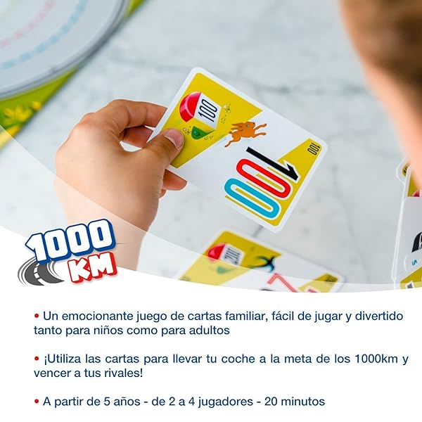 • UN JUEGO DE MESA FAMILIAR: avanza tu coche con tus cartas de kilómetros, coloca una ficha de ataque delante de tus oponentes para retrasarlos y defiéndete con la carta de defensa