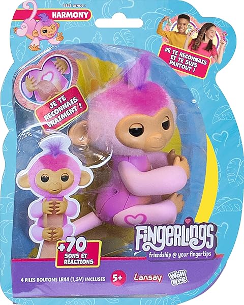 - BEBÉ Mono PORTÁTIL DEMASIADO MIGNO: Lleva Harmony, tu peluche interactivo Fingerling a cualquier parte. Su pequeño tamaño y su capacidad de colgar facilitan su transporte. ¡Los Fingerlings serán los mejores amigos de tus hijos! ¡Cuelga Harmony en el dedo para ver su corazón iluminarse y escucharlo comunicarse contigo!