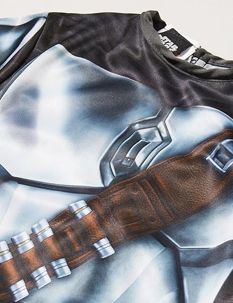 • JUMPSUIT: Increible Disfraz de Mandalorian clásico para niños. Un mono impreso con los detalles característico oficiales del traje de El Mandalorian. Traje de mangas largas. Cierre de velcro trasero para facilitar su colocación. Este disfraz esta diseñado con material adecuado en Polyester para largas jornadas de juego y diversión. Debidamente empaquetado en bolsa de percha.