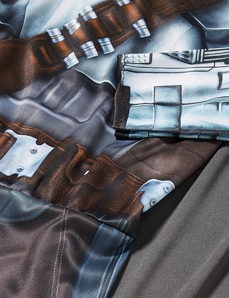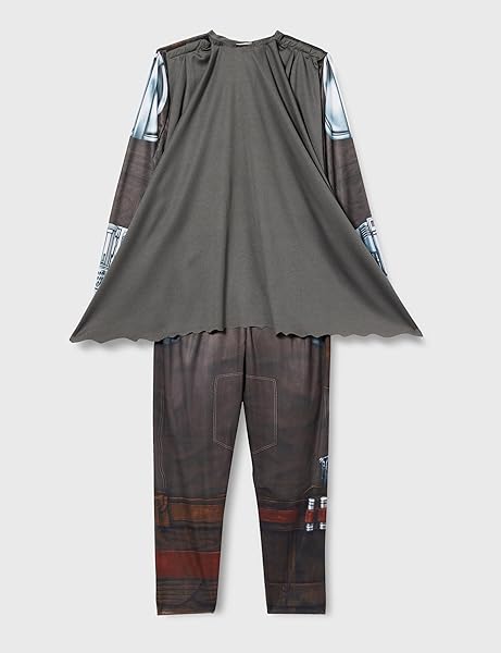 • ACCESORIOS: Para complementar su disfraz de Mandalorian su capa y máscara son esenciales, y van incluidos. Esta capa esta adjunta al mono. La máscara caracteristica de Mandalorian esta hecha de Plástico y cubre el frente del rostro por completo.