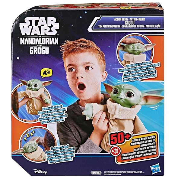 • MÁS DE 50 COMBINACIONES DE SONIDOS Y ACCIÓN: Presiona la cabeza de Grogu una vez o 3 veces seguidas para activar más de 50 combinaciones de acción y sonidos, incluyendo el modo de la Fuerza cuando mantienes presionada su cabeza