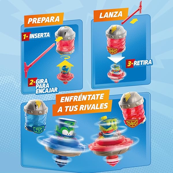 • COLECCIÓNALOS TODOS: Hay 6 Kazoom Spinners para coleccionar: Enigma, Profesor K, Mr King, Doc Vroom, Lancelord y Equilibra ¡Completa la colección y crea infinitas combinaciones de combate!