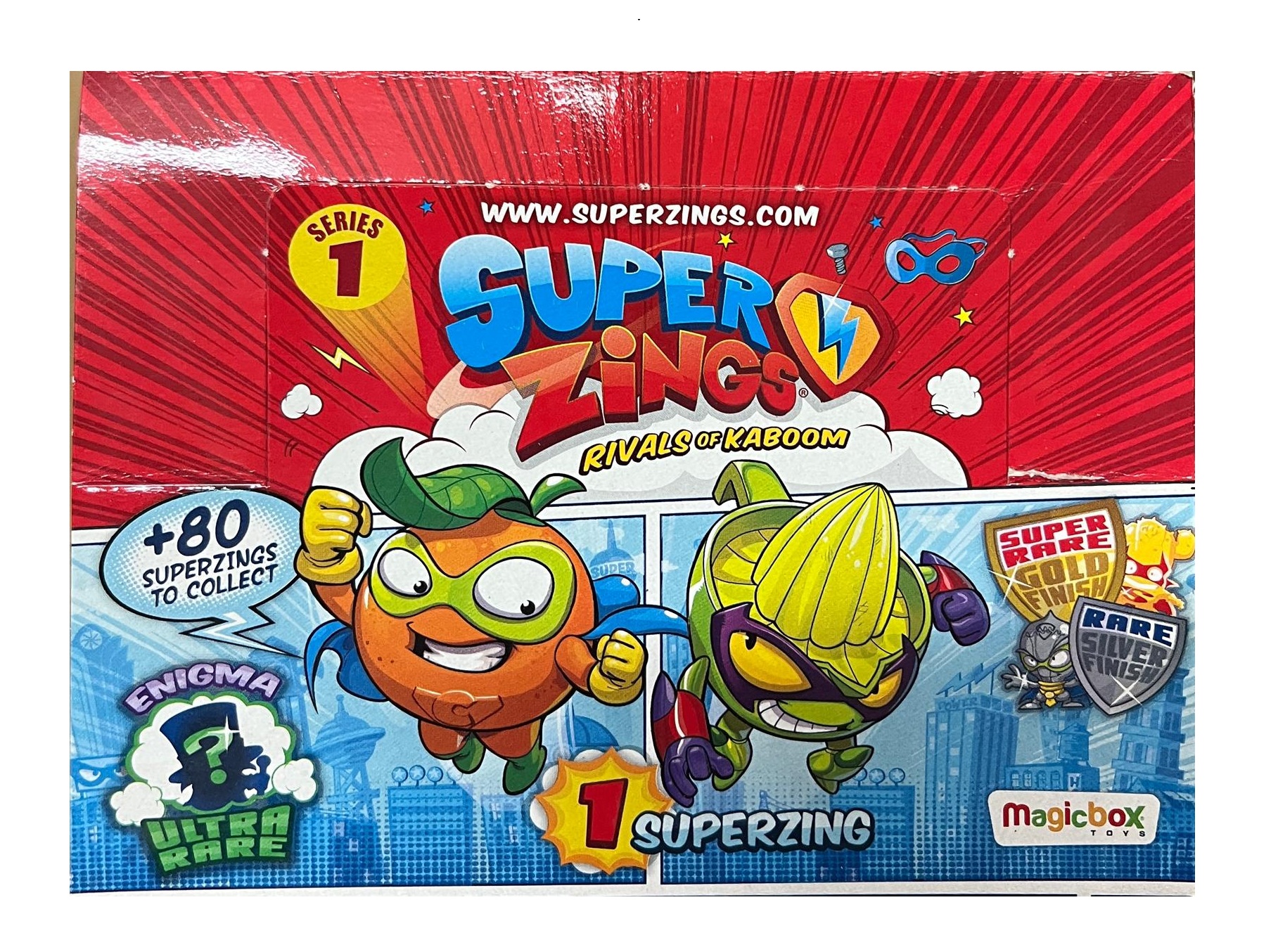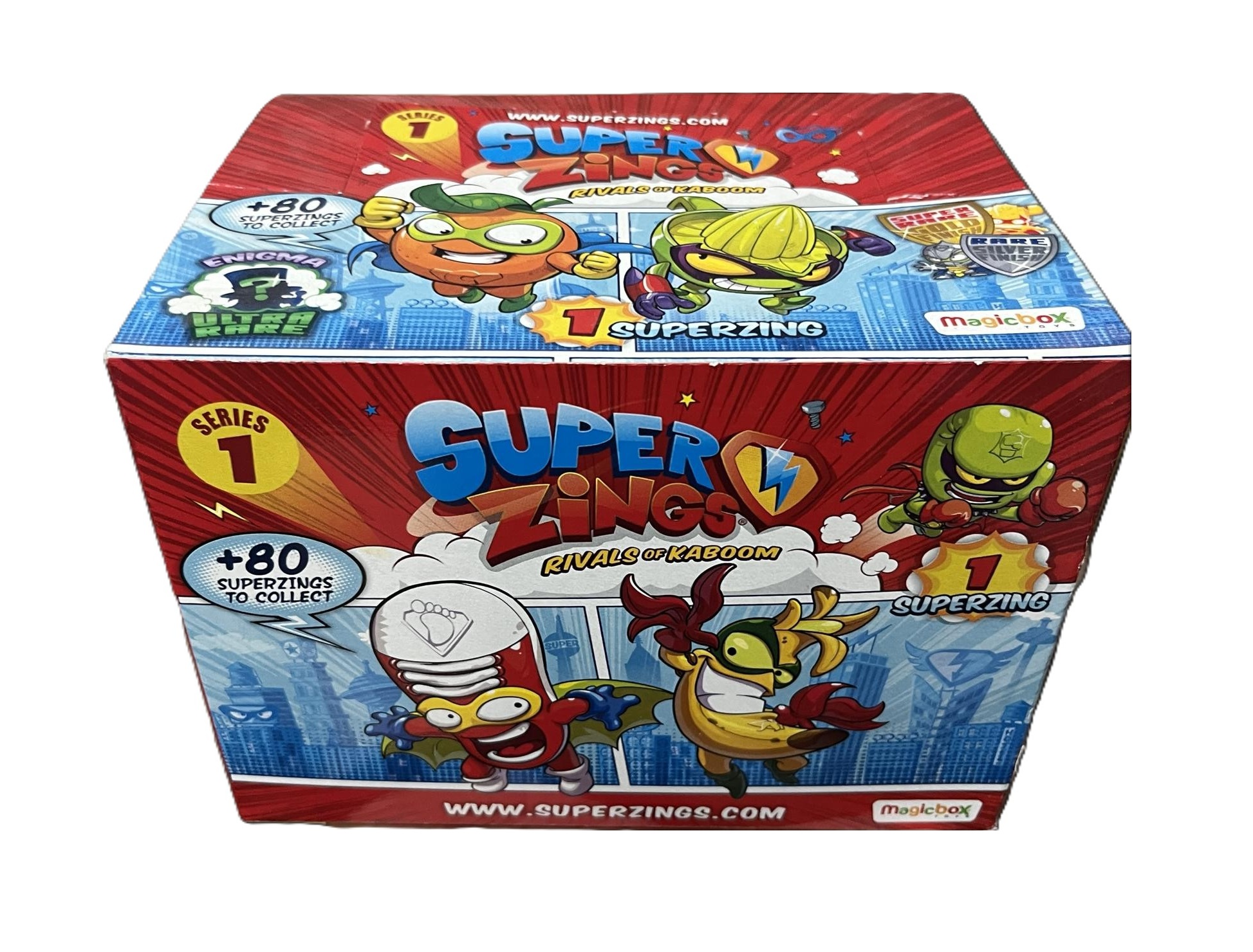 Descubre la increíble caja de SuperThings Serie 1 con 50 sobres sorpresa, perfecta para los fans de las figuras coleccionables. Cada sobre incluye un personaje sorpresa y su checklist, ideal para empezar o completar tu colección.